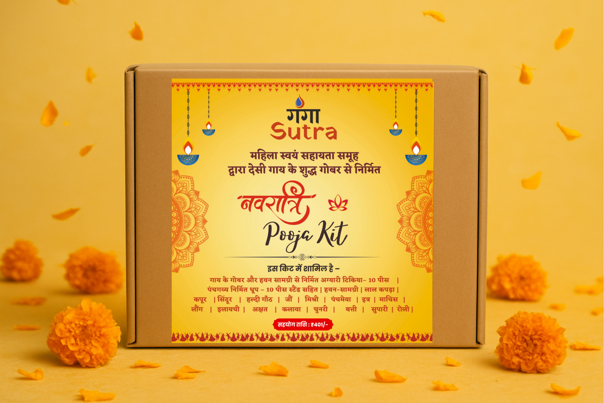 यह पर्यावरण-अनुकूल पूजा किट महिला स्वयं सहायता समूह द्वारा देसी गाय के शुद्ध गोबर से हस्तनिर्मित है। यह किट आपके नवरात्रि उत्सव को प्लास्टिक-मुक्त, सस्टेनेबल और दिव्य बनाती है।